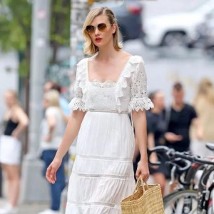 在个人私下约会期间,她还上身过两条一字肩吊带小礼服,强烈安利各位肩颈线条优越的妹子入手,超显气质。