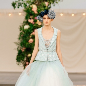 | 晚礼服 当大秀尾声时,模特身着一系列精致而华丽的晚礼服鱼贯而出。 晚礼服带有迷人褶皱,披风+拖地设计,穿着上身便气场全开。
